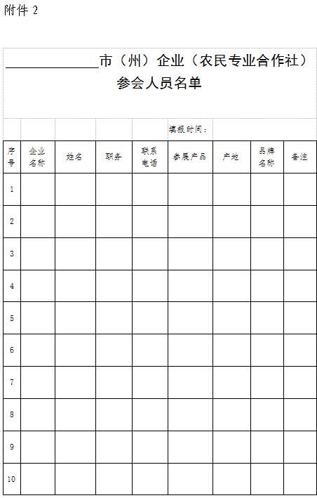 2、 市(州)企業(農民專業合作社)參會人員名單