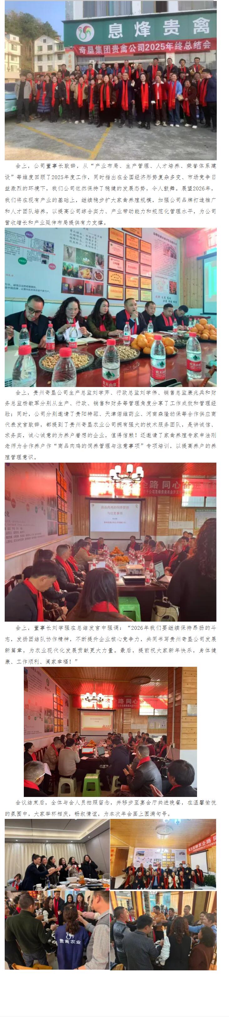 貴州奇墾集團公司——息烽貴禽農業開發有限公司“聚力深耕農業路,同心奮進新征程”2025年度會議取得圓滿成功